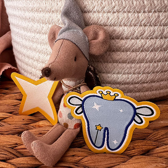 Este parche reciclado del Ratoncito Pérez se puede planchar, coser o pegar.