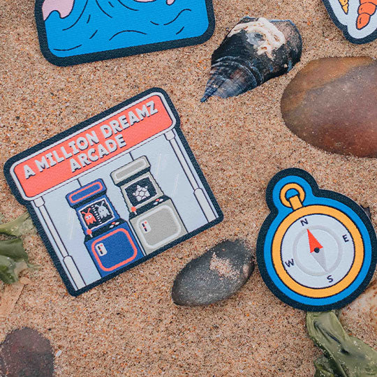 The Arcade patch is part of our Seaside Collection, designed to evoke memories of the coast. Made from recycled materials, this eco-friendly patch can be easily applied in minutes—iron, sew, or glue it onto your favourite items. Perfect for adding a personal touch to your seaside-inspired wardrobe.